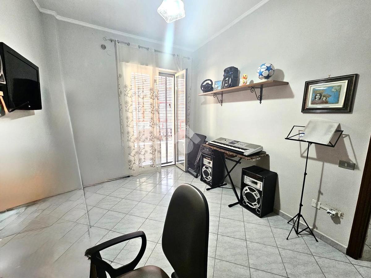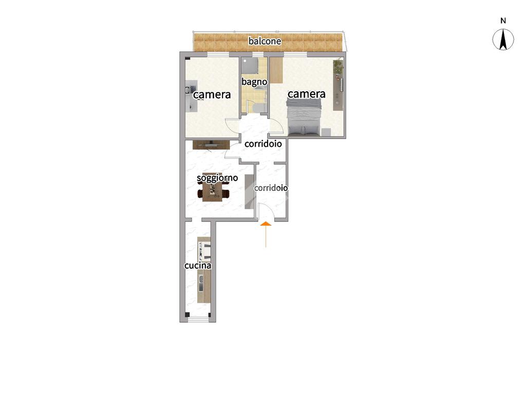 L’appartamento è composto da ingresso su corridoio che distribuisce in modo funzionale tutti gli ambienti della casa. La zona giorno è suddivisa in cucina abitabile e soggiorno separato, offrendo spazi ben distinti e vivibili. La zona notte comprende camera da letto, cameretta e un bagno finestrato.